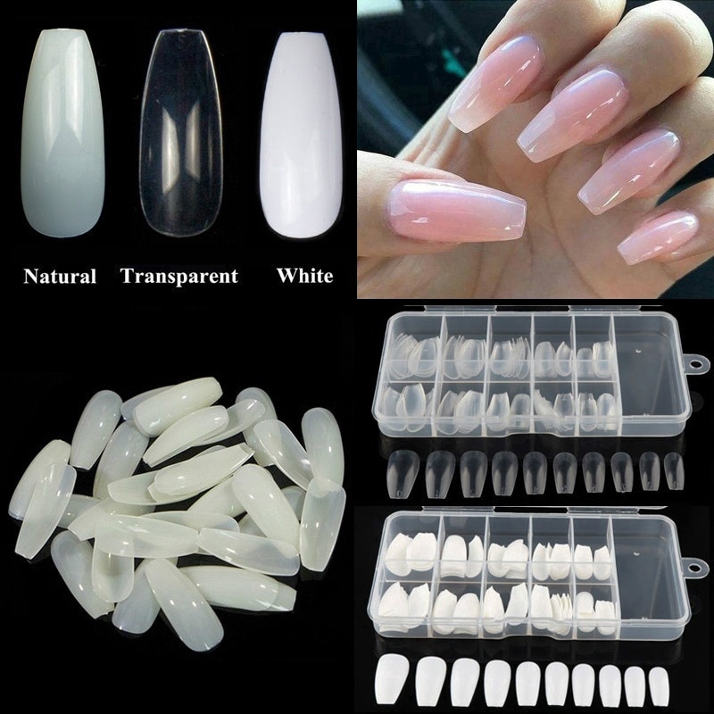 100pcs 600pcs Coffin Fake Nails Tips Flat Shape Long Full Cover